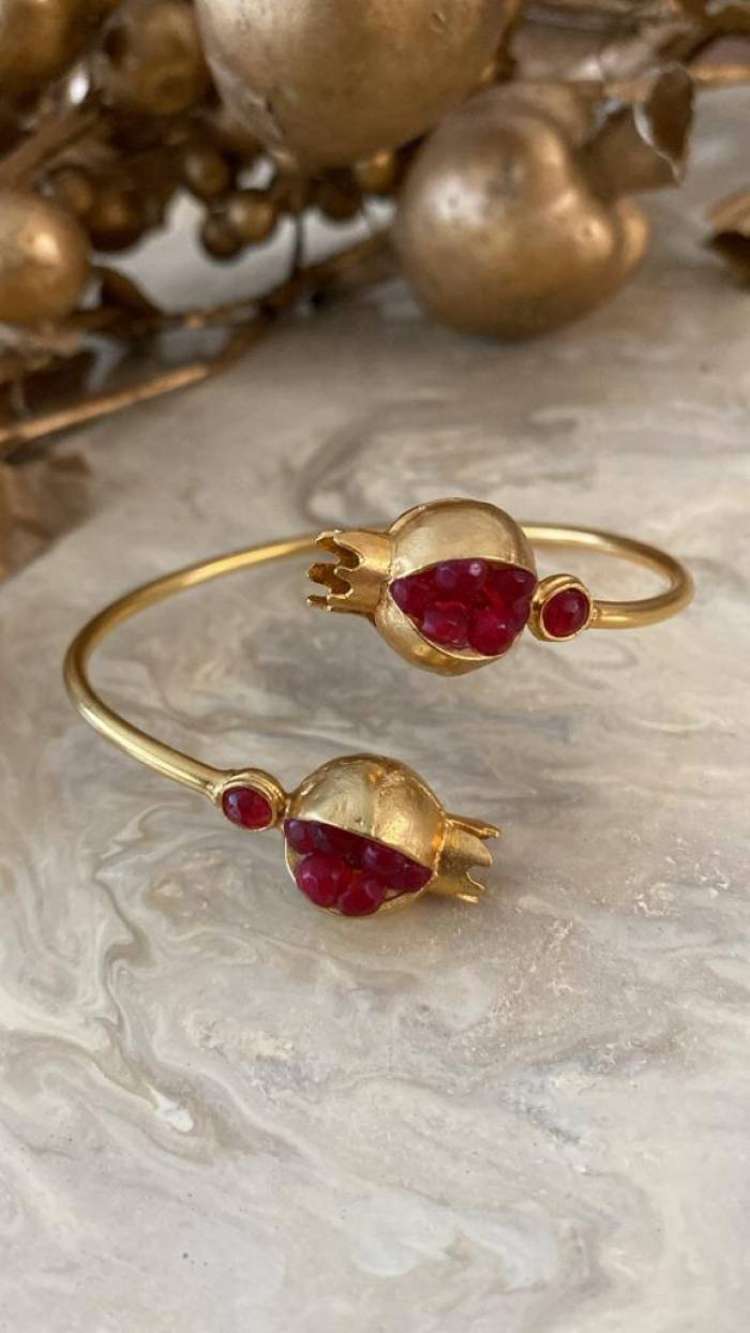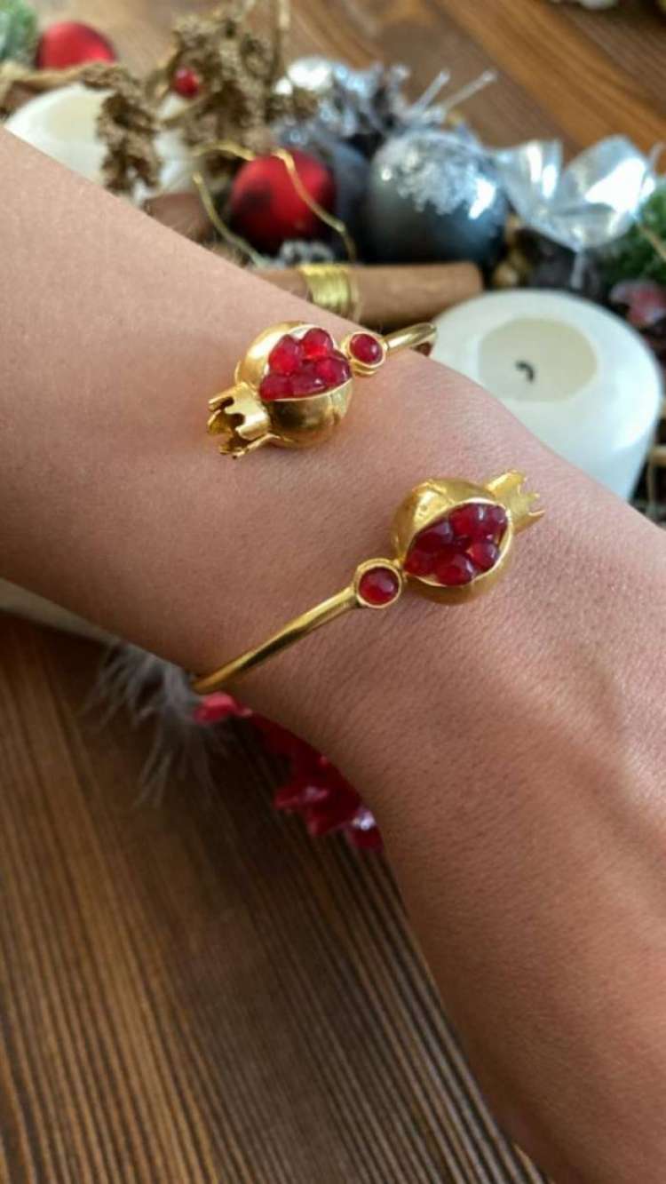 Bronz üzerine altın kaplama, garnet taşı ayarlanabilir bileklik