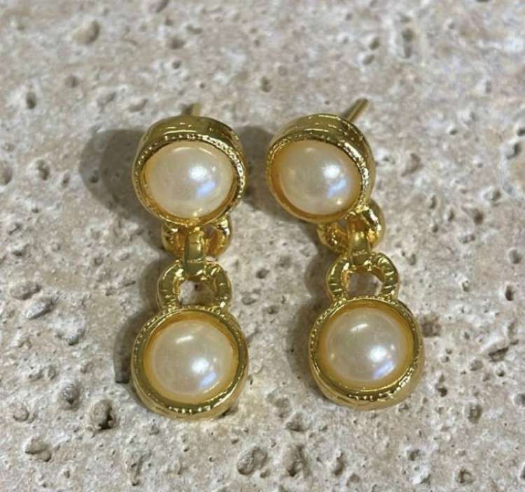Bronz üzerine altın kaplama inci küpe
