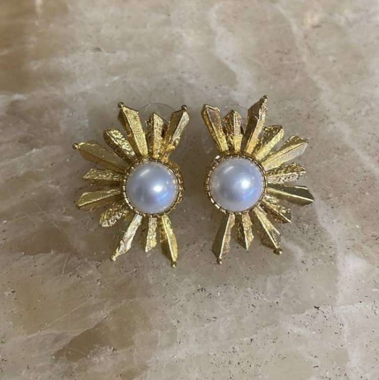 Bronz üzerine altın kaplama incili küpe